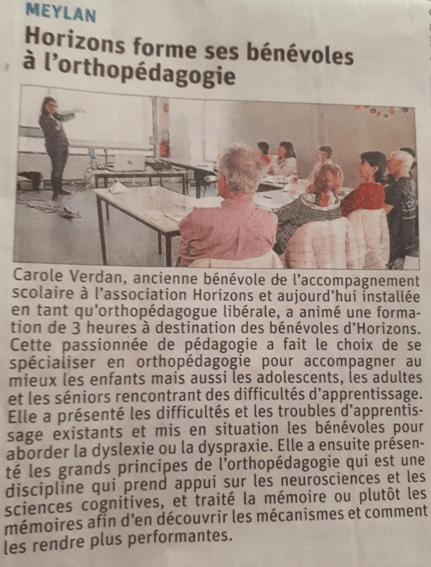 L'année dernière, j'avais donné deux formations au sein de l'association Horizons Meylan. L'une à destination des collégiens, l'autre des bénévoles à l'accompagnement scolaire.
